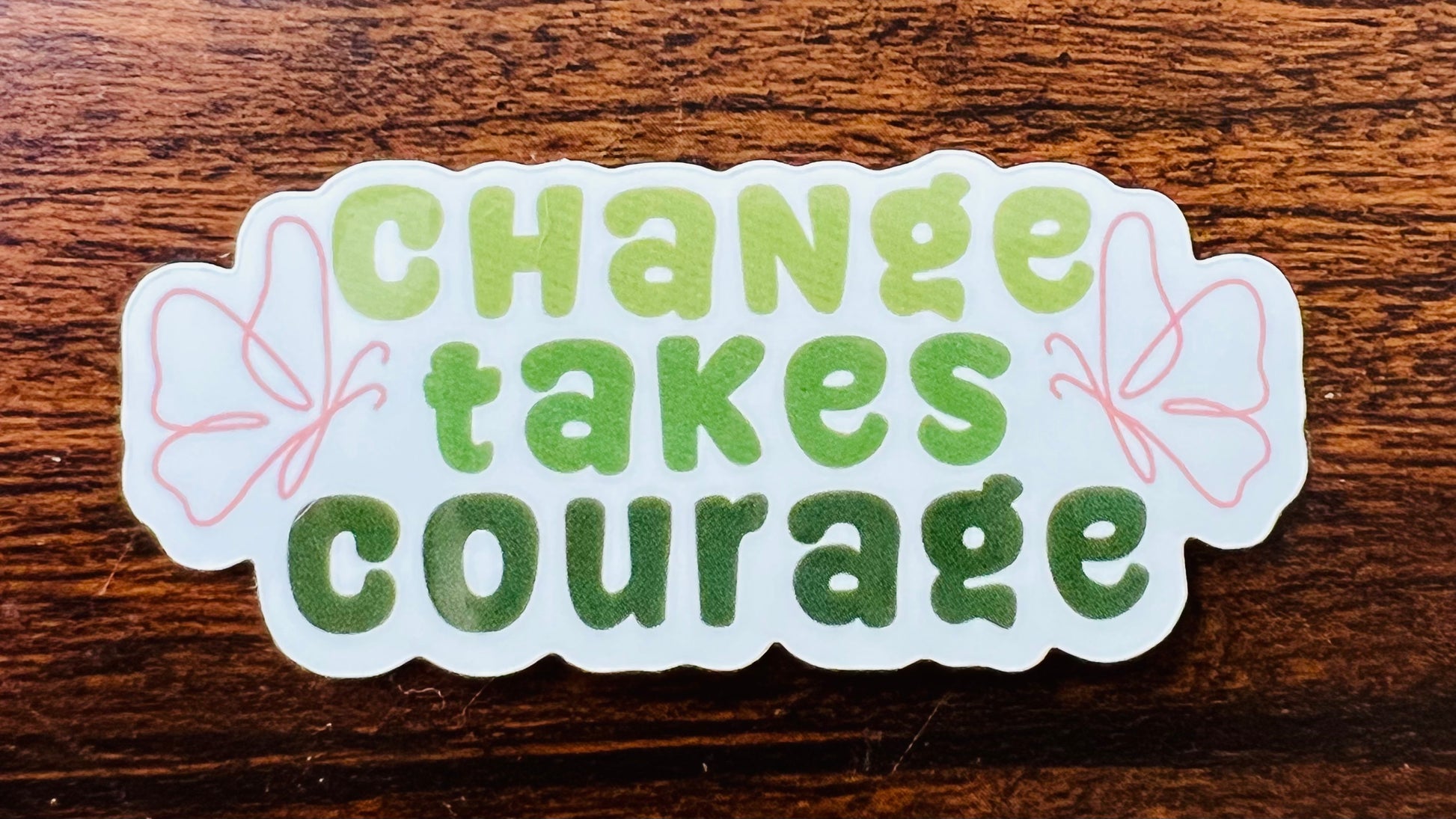 Change takes courage - featuring green for Mental Health and butterflies for a reminder of the beauty after change.